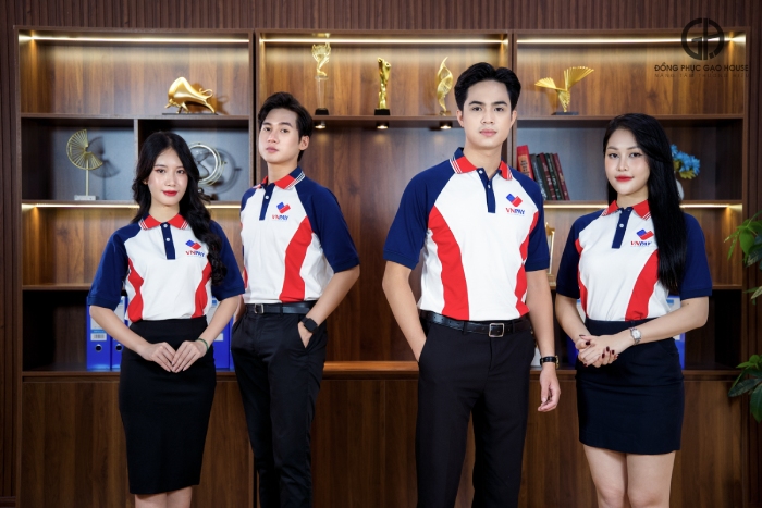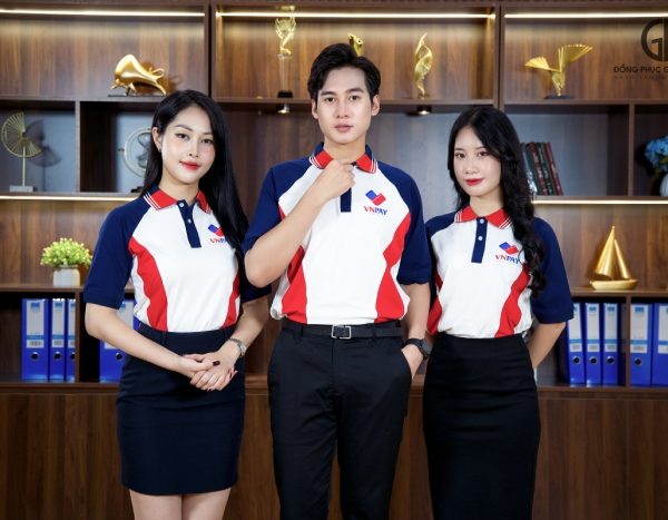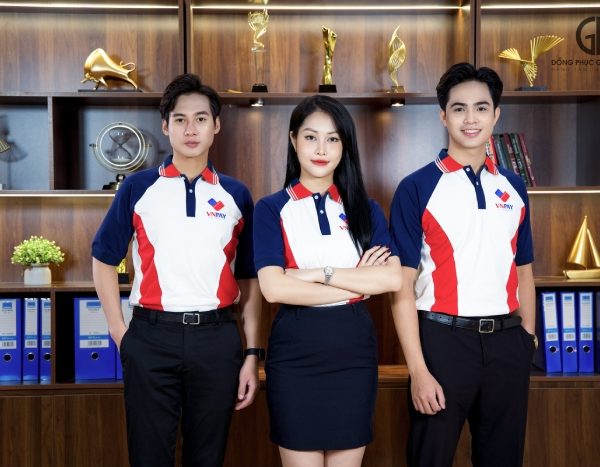 - Phong cách thanh lịch: Kết hợp áo thun đồng phục có cổ VNPAY với quần âu đen, chân váy dài tối màu sẽ giúp bộ đồ thêm lịch lãm, độc đáo hơn. Bạn cũng có thể điểm nhấn thêm giày tây, giày cao gót,… để bộ đồ thêm chỉn chu, sang trọng khi gặp gỡ khách hàng.