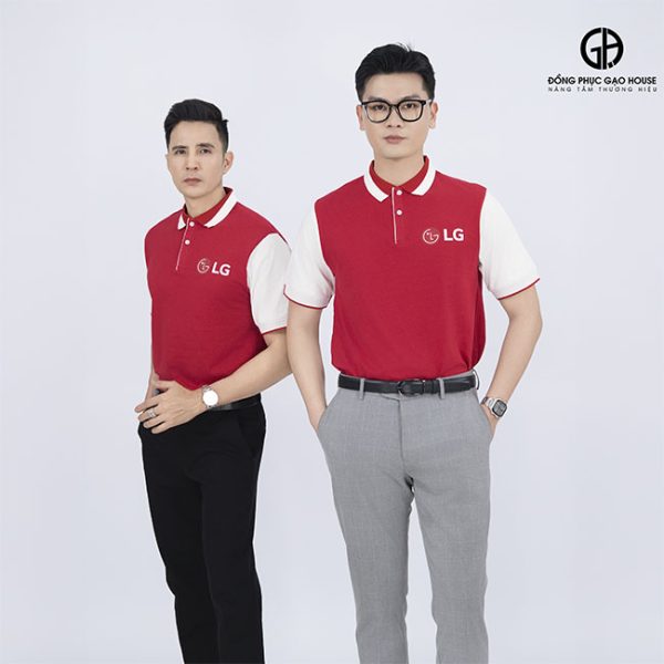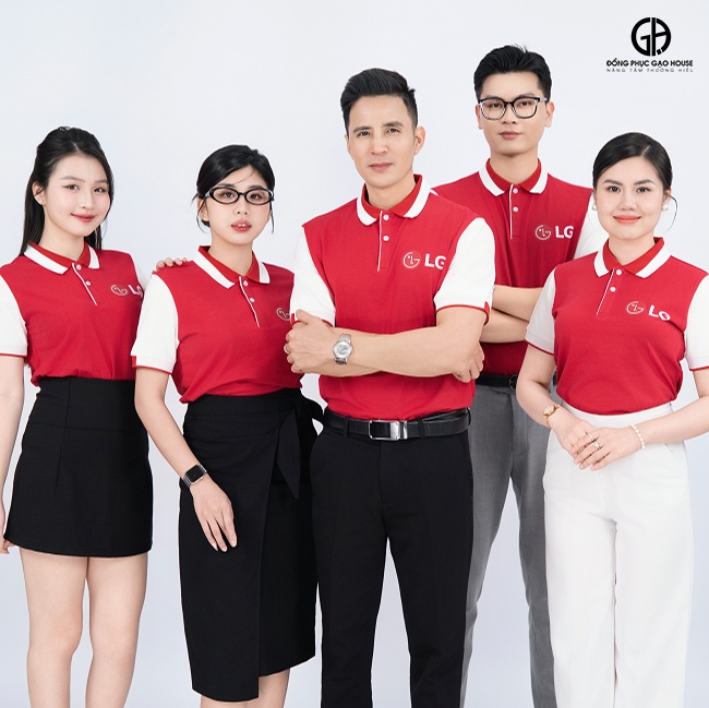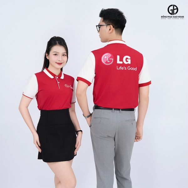 Đồng phục phản ánh bản sắc riêng của doanh nghiệp đồng thời ghi điểm ấn tượng của thương hiệu trong mắt khách hàng và đối tác. Thiết kế áo đồng phục công ty LG sử dụng gam màu đỏ chủ đạo, tượng trưng cho năng lượng, sự nhiệt huyết và sức mạnh thương hiệu. Được sản xuất từ chất liệu vải cotton cao cấp mang đến cảm giác mềm mại, thoáng mát, dễ chịu cho người mặc, ngay cả khi làm việc căng thẳng.