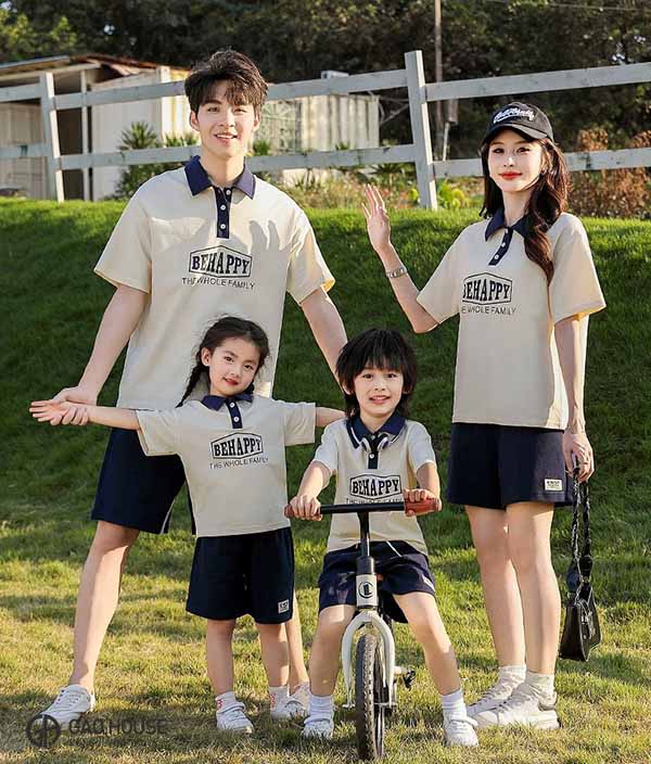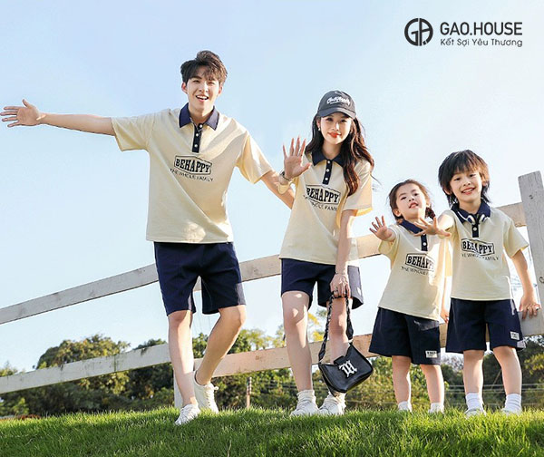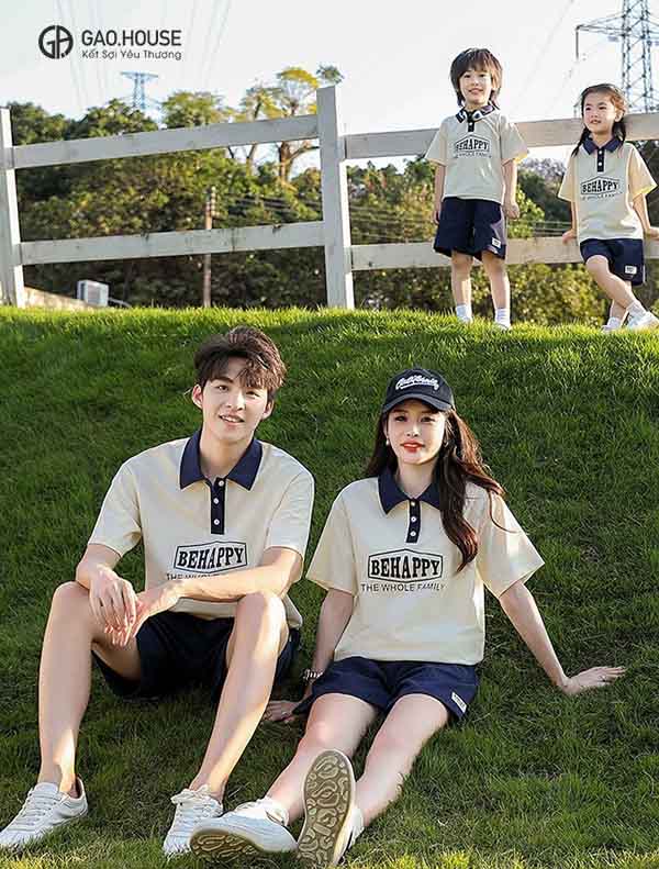 Mẫu áo polo gia đình Behappy là một trong những phong cách đồng phục bán chạy hàng đầu tại Gạo House. Items được duy trì form dáng polo T-shirt basic, kiểu dáng không quá bó sát nhằm mang đến cảm giác thoải mái tuyệt đối cho người mặc. Phần cổ và trụ áo được phối đen tinh tế nhằm tạo điểm nhấn cũng như sức hút cho các thành viên trong gia đình khi chụp hình kỷ niệm.