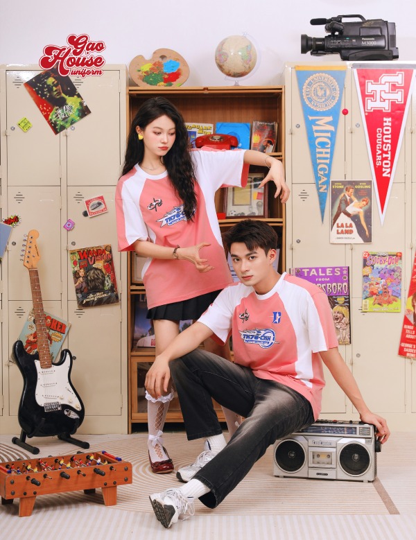Mẫu áo phông đồng phục được Gạo House lấy tone chủ đạo là hồng mang đến cảm giác tươi mới và tràn đầy sức sống. Sắc hồng nhẹ nhàng, ngọt ngào như những nhân vật hoạt hình chibi, vừa dịu dàng vừa năng động của tuổi trẻ. Cầu vai và sườn áo được nhấn nhá bằng sắc trắng lung linh, làm nổi bật nét thanh lịch và thời thượng của item.