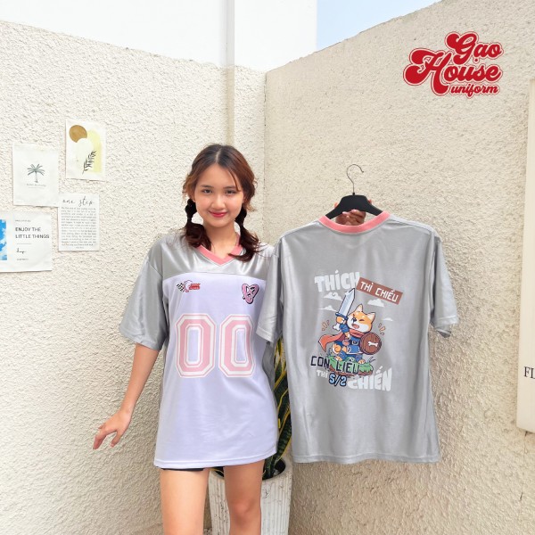 Đồng phục lớp được thiết kế nhằm tạo ra sự gắn kết, kết nối từng thành viên lại với nhau. Nếu lớp bạn vẫn đang tìm chọn một mẫu áo lớp đẹp, độc đáo thì hãy đặt may đồng phục giá rẻ ngay thiết kế đồng phục lớp cổ V tone xám phối trắng tại Gạo House. Item sở hữu tone màu xám phối trắng hài hòa, phần cổ V được line màu hồng đậm tạo điểm nhấn độc đáo. Form dáng áo được thiết kế theo dáng thể thao, tạo nên vẻ ngoài trẻ trung, năng động. Ngoài ra, hình in trên mẫu áo lớp cũng được tô điểm bằng những con số độc đáo nhằm tạo ra vẻ đẹp riêng với các tập thể khác.