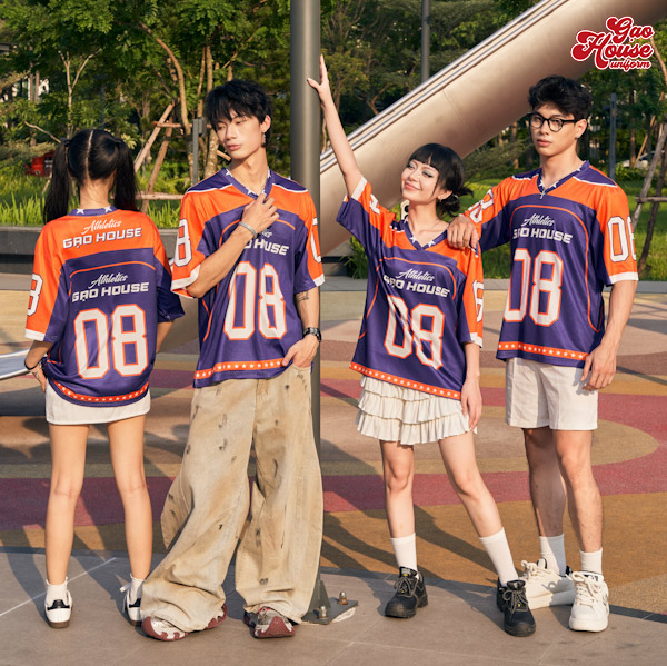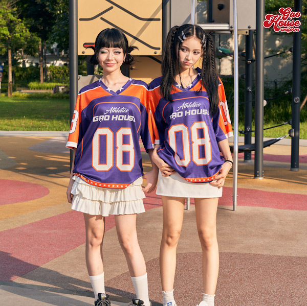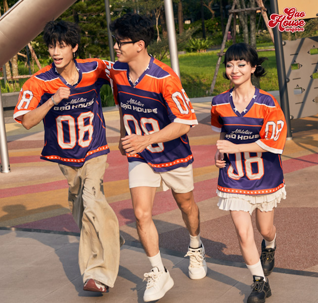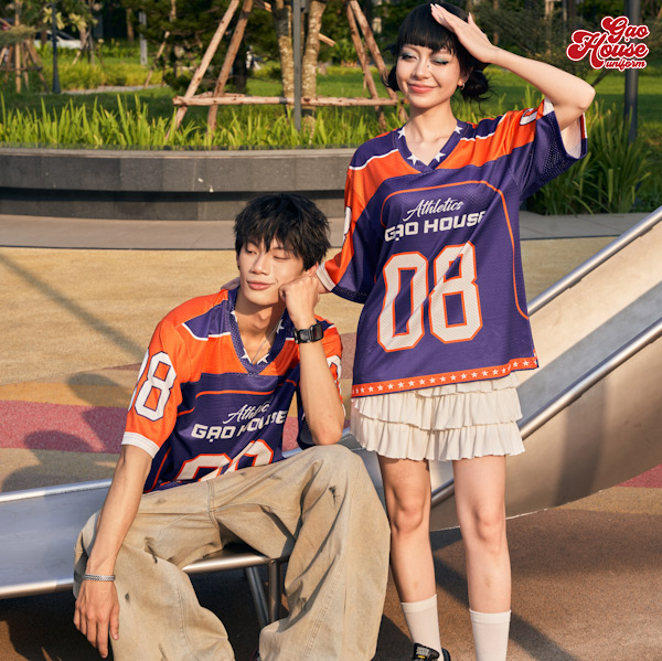 Không chỉ là một mẫu đồng phục, mẫu áo đồng phục lớp tím – cam Gạo House là cú “mix màu” táo bạo khiến cả team trông như bước ra từ sàn diễn streetwear thực thụ. Tím mang vibe sáng tạo và khác biệt, cam lại là gam màu của năng lượng và tự tin, hai sắc độ ấy hòa vào nhau tạo nên chiếc áo vừa nổi bật, vừa mang tinh thần bứt phá chuẩn Gen Z. Diện lên là “bật mood”, đứng vào khung hình là sáng bừng cả team!