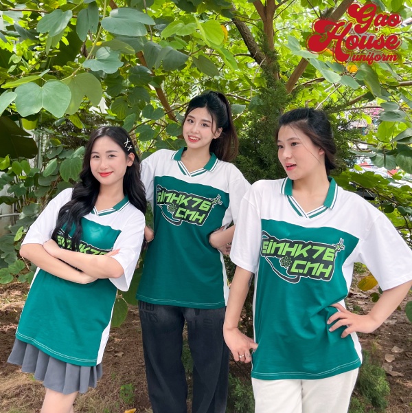 Với màu xanh trắng làm chủ đạo, màu trắng tạo cảm giác trang nhã, trong khi đó màu xanh lá phối mang đến nét tươi mới và năng động. Điểm nhấn đặc biệt nằm ở hình in logo được in ở phía trước ngực với nền xanh tạo sự đồng điệu nổi bật. Hơn nữa, mẫu áo đồng phục được làm từ chất liệu vải cotton cao cấp, mềm mại và thấm hút mồ hôi tốt, đảm bảo cảm giác thoải mái suốt cả ngày học tập.