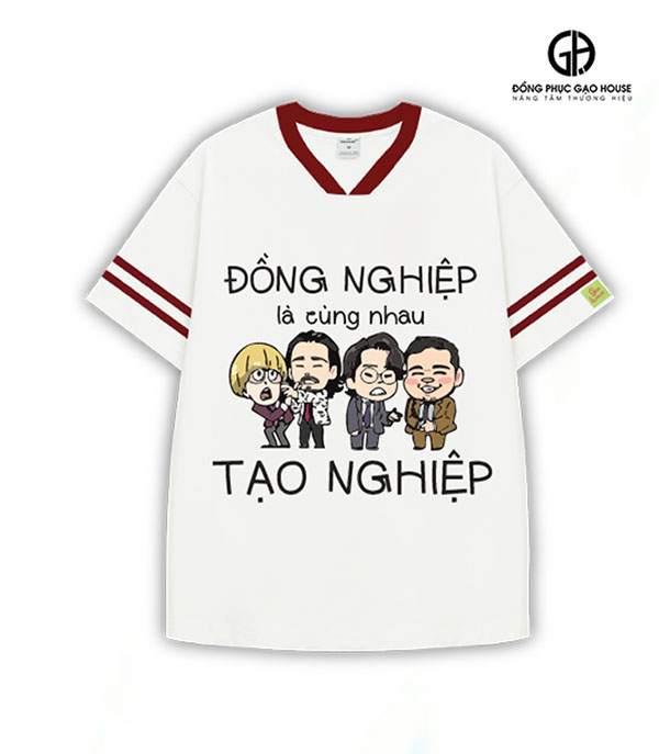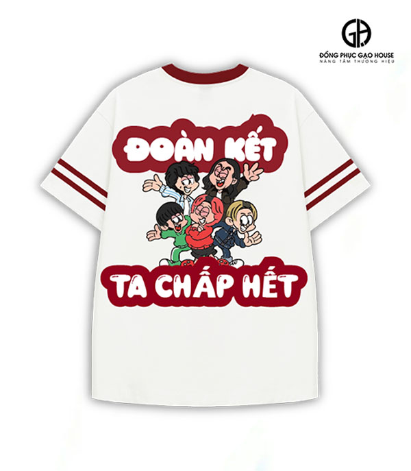 Bên cạnh đó, màu trắng gạo cũng là biểu tượng của sự tinh khiết, gắn kết và đồng lòng, đúng với tinh thần khi mặc áo nhóm. Chính nhờ sắc trắng nhẹ nhàng nhưng nổi bật, chiếc áo thun đồng phục nhóm này giúp cả tập thể tỏa sáng giữa đám đông, mà vẫn giữ được sự hài hòa, dễ chịu cho người mặc.