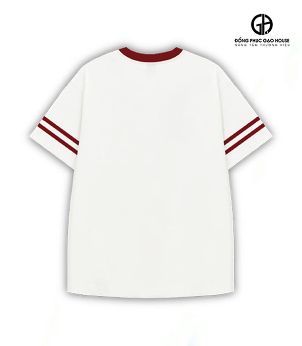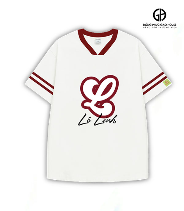 Điểm nhấn ấn tượng nhất của chiếc áo nhóm chính là cổ V bo rib màu đỏ đô – chi tiết tưởng chừng đơn giản nhưng lại tạo nên hiệu ứng thị giác cực tốt. Cổ V giúp phần cổ – vai – ngực trở nên thanh thoát hơn, đặc biệt rất “ăn hình” khi chụp ảnh nhóm. Đây là sự lựa chọn lý tưởng cho các nhóm muốn “bẻ trend” khỏi kiểu cổ tròn truyền thống.
