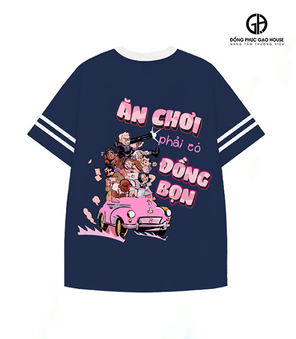 So với các mẫu áo phông nhóm màu sáng dễ đại trà, xanh đen tạo nên nét cá tính rõ rệt và dễ phối với hình in màu trắng, vàng hoặc đỏ, giúp tổng thể mẫu áo nhóm thêm phần nổi bật. Đặc biệt, màu xanh đen ít bám bẩn, giữ được độ mới lâu, phù hợp để mặc khi đi chơi, dã ngoại hay team-building.