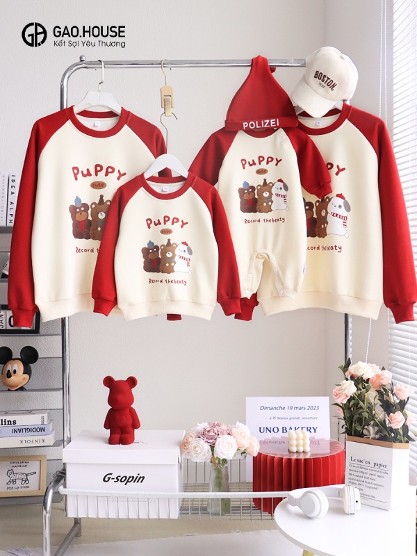 Áo gia đình mùa đông “Puppy” phối màu đỏ – trắng sẽ mang đến một không khí ấm áp và tràn đầy niềm vui. Hình ảnh những chú chó con ngộ nghĩnh, đáng yêu được in nổi bật trên nền áo màu trắng tinh khôi, tạo nên một tổng thể hài hòa và thu hút. Áo được may từ chất liệu da cá mềm mại, mịn màng không chỉ giúp giữ ấm cơ thể mà còn tạo cảm giác thoải mái, dễ chịu. Với chiếc áo đồng phục này, cả gia đình sẽ trở nên thật đáng yêu và ấm áp khi cùng nhau đón mùa đông giá lạnh.