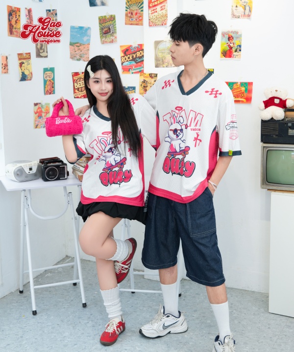 Mẫu áo lớp 3D “Team Quẩy” cổ V trắng phối sườn hồng là sự lựa chọn hoàn hảo cho những ai “yêu màu hồng ghét sự giả dối” lại thích năng động, cá tính và nổi bật. Với thiết kế cổ V thời trang và form dáng oversize rộng rãi thoải mái, giúp các bạn học sinh không bị gò bó mà tự do hoạt động. Màu sắc được phối tinh tế, với nền trắng thanh thoát, viền line đen sắc sảo ở cổ và ống tay tạo hiệu ứng chiều sâu cho chiếc áo. Hình in 3D sắc nét với dòng slogan “Team Quẩy” cực chất, mang đến vẻ ngoài vừa năng động lại vừa sôi động, thể hiện đúng tinh thần đoàn kết và nhiệt huyết của tập thể.