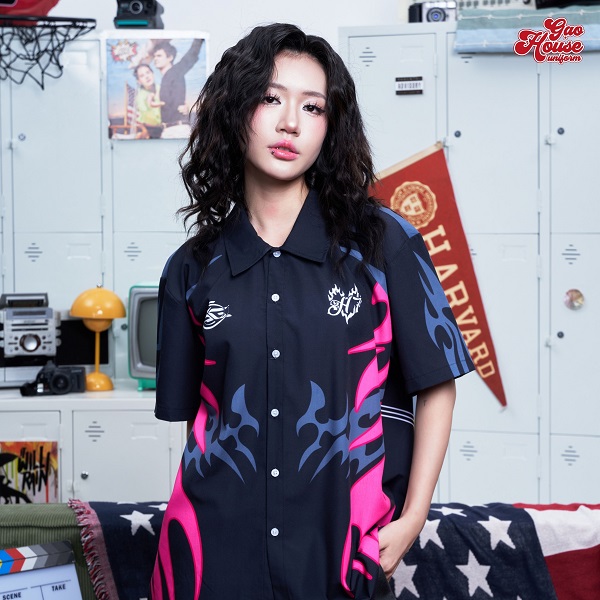 Mẫu áo lớp sơ mi họa tiết lửa xanh hồng Print SM của Gạo House đang làm “chao đảo” nhiều nhóm lớp, trường học vì thiết kế quá ưng. Mẫu áo mang tinh thần của một ban nhạc tuổi trẻ vừa bùng ngọn lửa sáng tạo vừa ngầm phóng ra năng lượng tự do. Màu xanh đen chủ đạo kết hợp với những mảng flame hồng tím chạy dọc hai bên như vệt âm thanh đang nhảy múa trong không khí. Áo lớp được thiết kế rộng rãi, phóng khoáng, sinh ra để cho lớp mình nổi bật trong mọi sân khấu.
