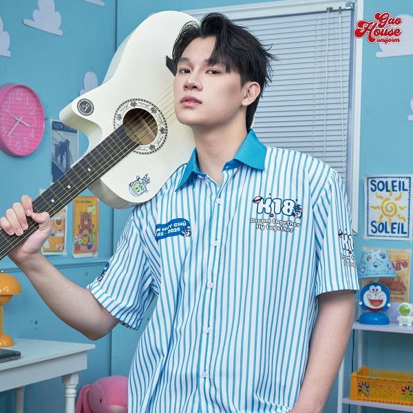 1. Thông tin chi tiết mẫu áo lớp sơ mi Boxy sọc xanh in họa tiết phi hành gia