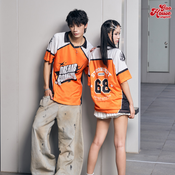Mẫu áo Dreams Coming chinh phục ánh nhìn ngay từ giây đầu tiên với gam cam rực rỡ tràn đầy năng lượng – sắc cam đặc trưng gợi nhớ đến ánh hoàng hôn đang cháy, tượng trưng cho sức trẻ, sự nhiệt huyết và tinh thần luôn tiến về phía trước. Màu cam được pha theo tông warm-orange ánh neon nhẹ, vừa nổi bật dưới ánh sáng tự nhiên, vừa mang độ tươi sáng vừa phải khi nhìn trực tiếp, giúp chiếc đồng phục đẹp nổi bật mà không bị chói.