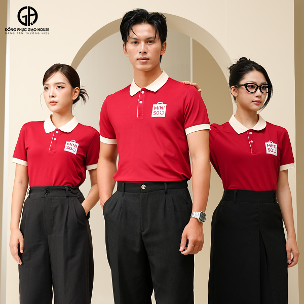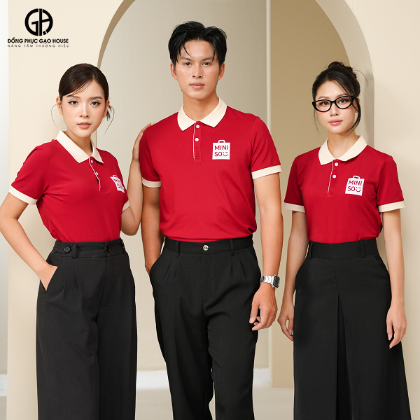 Mẫu áo đồng phục màu đỏ đô Mini so thời trang mang đậm hơi thở thiết kế hiện đại và sự sang trọng trong từng chi tiết. Thiết kế áo đồng phục doanh nghiệp cổ bẻ phối viền be trẻ trung và giữ trọn vẻ đẹp thanh lịch trong môi trường công sở. Mỗi đường may, mỗi gam màu đỏ đô đều thể hiện tinh thần nhiệt huyết và sự chuyên nghiệp, giúp doanh nghiệp ghi dấu ấn mạnh mẽ trong mắt khách hàng, đồng thời nâng tầm thương hiệu của bạn.