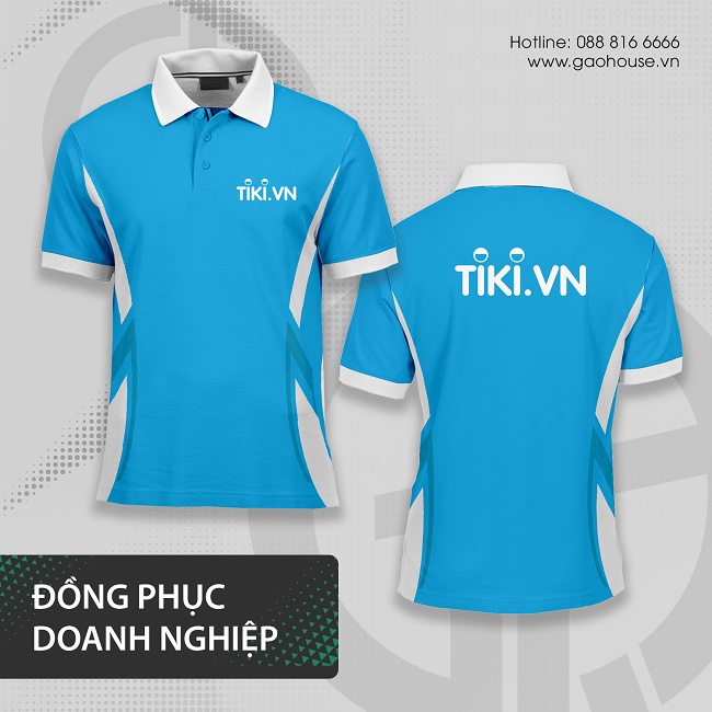 Áo Polo 3D Doanh Nghiệp Tiki Màu Xanh Phối Bo Tay Trắng
