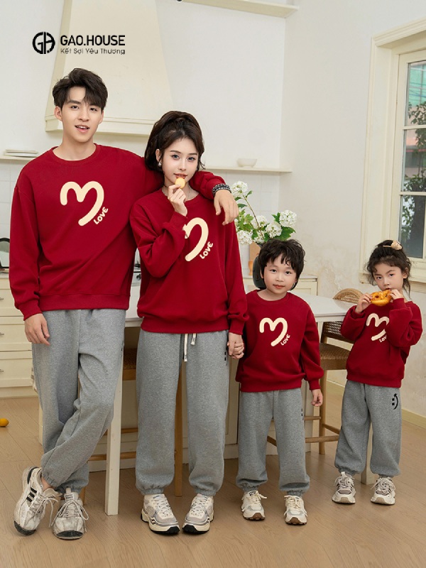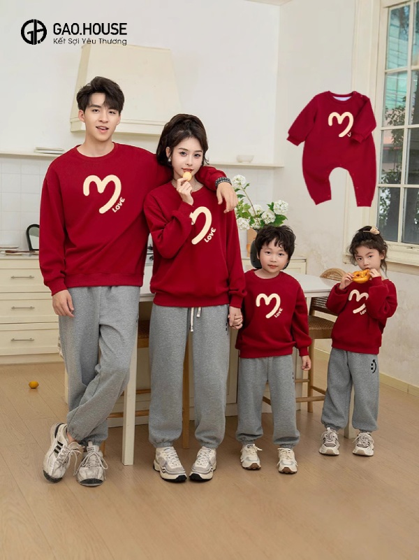 Áo sweater đồng phục gia đình màu đỏ phối hình in trái tim mang đến sự gắn kết, gia tăng tình yêu thương giữa các thành viên. Thiết kế dáng sweater mang đến cảm giác thoải mái, năng động nhưng không kém phần thời trang. Đặc biệt, mẫu áo đồng phục gia đình mùa đông này được điểm nhấn với hình in nổi bật, tạo nên một tổng thể hài hòa và ấn tượng. Áo được may từ chất liệu vải nỉ da cá cao cấp, mềm mại, tạo cảm giác ấm áp và dễ chịu cho người mặc.