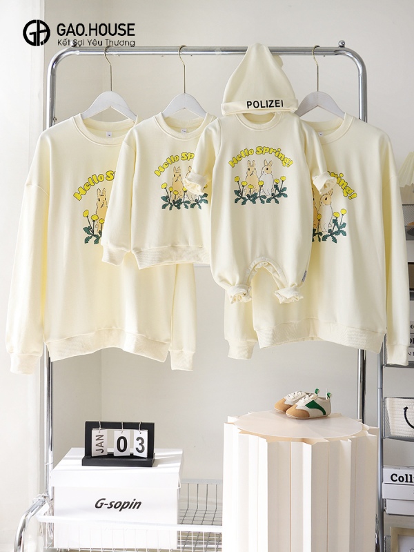 Áo sweater đồng phục gia đình mùa đông màu be “Hello Spring” mang đến một cảm giác ấm áp, nhẹ nhàng và tràn đầy hy vọng về một mùa xuân tươi mới. Màu be trung tính, nhã nhặn tạo cảm giác ấm cúng và dễ dàng phối hợp với nhiều loại trang phục khác nhau. Áo thường được may từ chất liệu da cá cao cấp, mang lại sự thoải mái và giữ ấm tốt cho người mặc. Điểm nhấn của mẫu áo này chính là dòng chữ “Hello Spring” (Chào mùa xuân) được in nổi bật, tượng trưng cho sự tươi mới, khởi đầu và hy vọng.