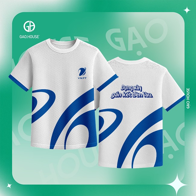 Áo Thun Doanh Nghiệp VNPT In 3D Thông Điệp Dựng Xây Gắn Kết Bền lâu