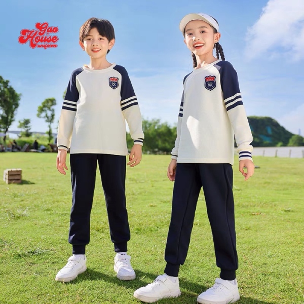 Mẫu áo đồng phục học sinh mùa đông được Gạo House ưu tiên thiết kế đơn giản nhưng không kém phần tinh tế, năng động. Với tone màu trắng kem chủ đạo, Gạo House khéo léo phối tay xanh than nổi bật cùng đường sọc line cá tính. Áo đồng phục mùa đông được may từ chất vải thun nỉ cotton cao cấp, mềm mại, co giãn tốt và đặc biệt giữ ấm cực tốt cho cơ thể, mang lại cảm giác thoải mái suốt ngày dài học tập. Phần cổ áo và viền tay được bo chun tròn, giúp các bạn hóc inh mặc lên vừa gọn gàng, chỉn chu và chống gió lạnh luồn vào trong người. Điểm nhấn nằm ở phần logo được in sắc nét trước ngực áo, vừa sang trọng vừa thể hiện chất riêng của lớp, trường học.