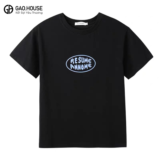 Ngay vị trí trung tâm thân áo là cụm chữ “RESUME ANHOME” được xử lý bằng kỹ thuật in PET chuyển nhiệt hiện đại. Cách in này giúp bề mặt hình in của mẫu áo đồng phục được sắc nét, đều màu và bám chắc vào nền vải mà không lo bong tróc hay nhòe mực sau nhiều lần giặt. Thiết kế chữ dạng graphic tinh gọn, không cầu kỳ nhưng vẫn đủ để tạo điểm dừng thị giác, khiến chiếc áo từ đơn giản trở nên có cá tính riêng.