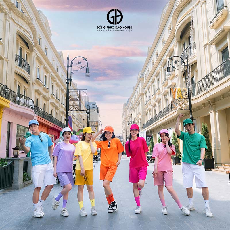 Điểm “ăn tiền” của mẫu áo thun nhóm này là logo hình in được thiết kế góc cạnh chất lừ, chuẩn vibe thể thao năng động. Gạo House chơi lớn với công nghệ in hiện đại, độ bền màu chuẩn đét, giặt tẹt ga mà không lo bong tróc, sờn bạc màu.