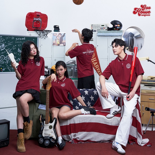 - Màu sắc: Sắc đỏ đô được lựa chọn làm tone chủ đạo, mang đến cảm giác sang nhẹ nhưng vẫn đầy năng lượng. Đây là gam màu vừa tôn da, vừa tạo hiệu ứng nổi bật khi cả lớp mặc chung rất đẹp mắt, hiện đại và cực kỳ “ăn hình”.