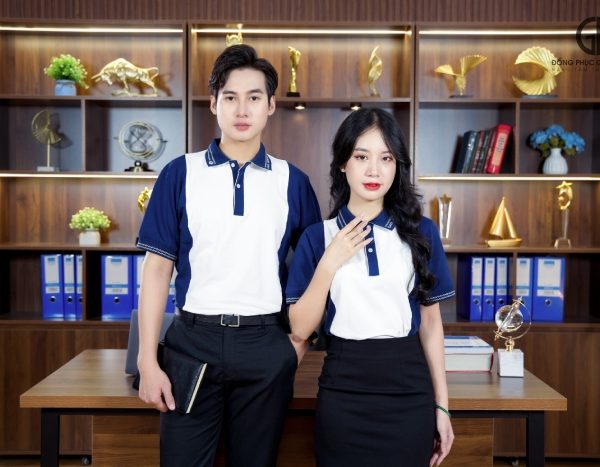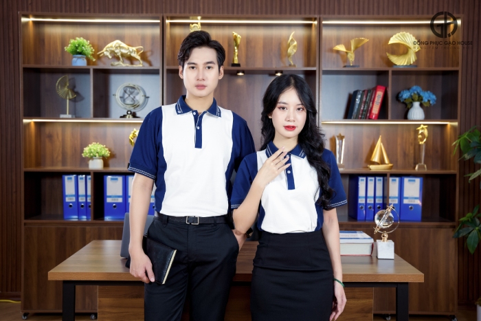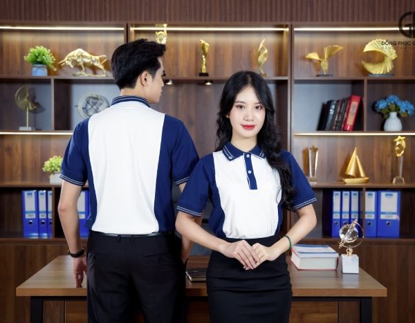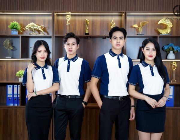 - Phong cách công sở thanh lịch: Để có một vẻ ngoài chuyên nghiệp và thanh lịch khi đi làm, bạn có thể kết hợp áo polo đồng phục với quần tây hoặc chân váy.