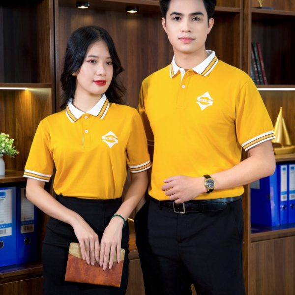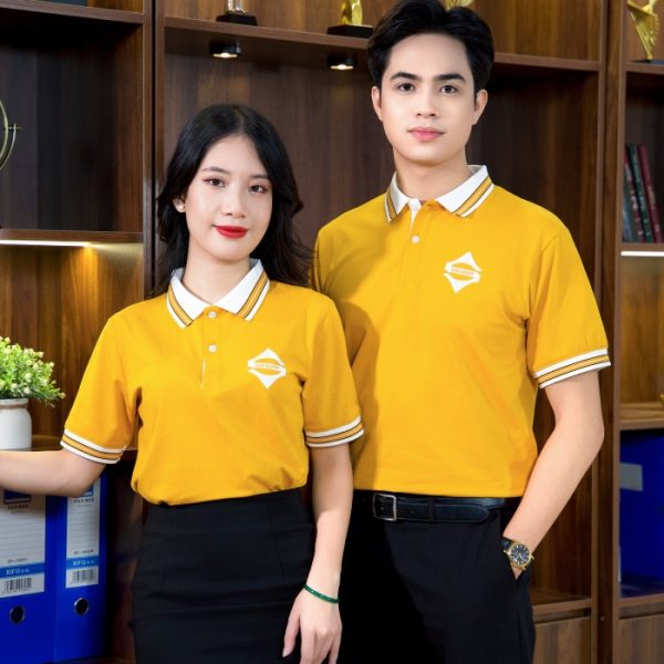 Bên cạnh đó, phần tay áo thun đồng phục được bo viền để tăng thêm vẻ đẹp chuyên nghiệp, chỉn chu hơn. Thiết kế phần cổ dệt được may đan chéo từ nhiều sợi cotton giúp đứng form, kết hợp với hai hàng khuy áo có thể tùy chỉnh đóng – mở tạo nên sự linh hoạt, thoải mái cho người mặc.