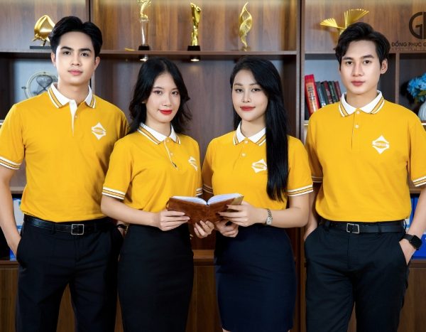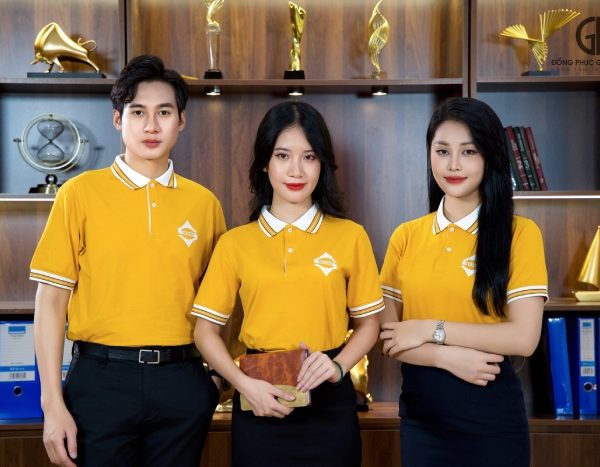 Đặc biệt, điểm nhấn của áo thun polo đồng phục nằm ở cách phối line trắng ở cổ bẻ và bo viền tay áo. Sự kết hợp hài hòa giữa hai tone màu trắng – vàng tạo nên sự khác biệt, độc đáo và chiếm trọn “spotlight” khi nhân viên Sun Group xuất hiện giữa đám đông.