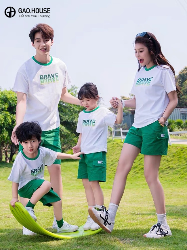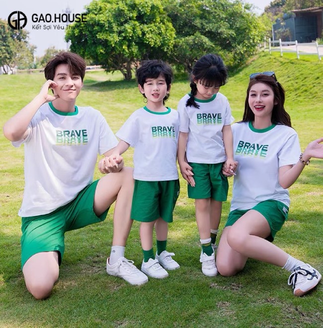 Mẫu đồng phục gia đình “Brave” với tone trắng phối xanh lá mang đến cảm giác mát dịu, tươi tắn, phù hợp cho cả nhà khi đi picnic, dã ngoại. Thiết kế cổ tròn basic dễ mặc, form dáng thoải mái cho mọi lứa tuổi, đi cùng dòng chữ “Brave” in nổi bật ở ngực áo như một lời nhắn nhủ đầy yêu thương: Hãy cùng nhau sống thật dũng cảm, vì gia đình luôn là chốn bình yên nhất.