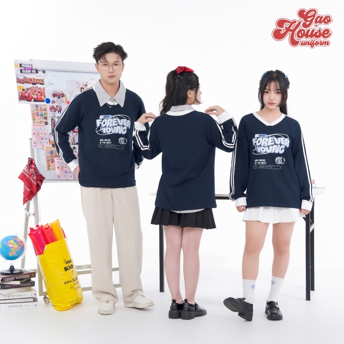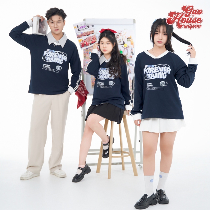 Đồng phục học sinh mùa đông màu đen “Forever Young” toát lên vẻ thanh lịch và bí ẩn. Gam màu đen cổ điển kết hợp với thiết kế hiện đại tạo nên một phong cách thời trang độc đáo. Mẫu áo lớp được may từ chất cao cấp không chỉ giữ ấm hiệu quả mà còn mang đến cảm giác mềm mại, thoải mái. Hình in “Forever Young” nổi bật ở phía trước ngực như một lời nhắc nhở về tuổi trẻ sôi động và những ước mơ không ngừng lớn lên.