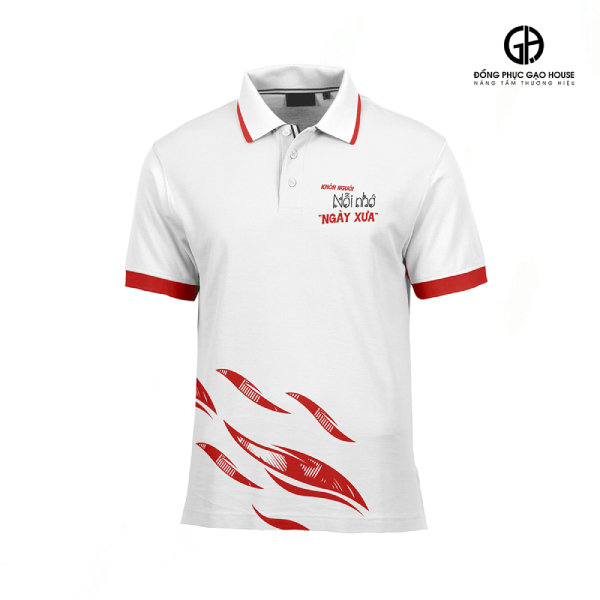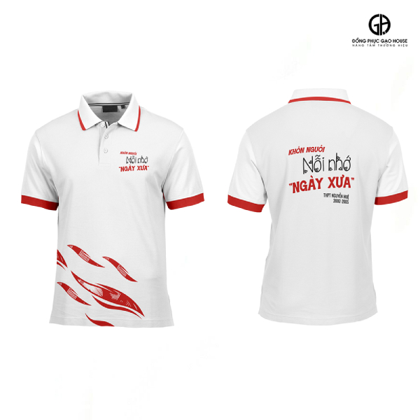 Đồng phục họp lớp cổ trụ màu trắng phối viền đỏ