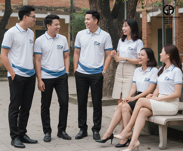 Tiếp nối tinh thần gắn kết của những ngày hội ngộ, mẫu áo đồng phục họp lớp kỷ niệm 20 năm ra trường trong hình mang đến cảm giác trang nhã, hiện đại nhưng vẫn đong đầy cảm xúc. Sau hai thập kỷ mỗi người một ngả, chiếc áo chung trở thành dấu hiệu nhận diện thân quen, giúp cả tập thể tìm lại sự đồng điệu, tiếng cười và những ký ức chưa từng phai mờ.