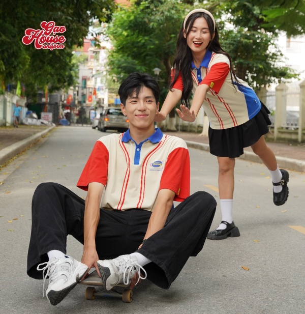 Mẫu áo lớp polo phối màu trong BST School Vibes Collection tại Gạo House lại tiếp tục gây tiếng vang lớn trên thị trường đồng phục. Item được tô điểm bằng cách phối màu độc đáo, hài hòa, bắt kịp xu hướng của các bạn trẻ GenZ. Bên cạnh đó, hình in trên áo đồng phục lớp còn được sử dụng công nghệ cao cấp, cho ra thành phẩm sắc nét, theo yêu cầu. Mẫu áo không chỉ mang đến vẻ đẹp đồng bộ mà còn như một ngọn lửa tượng trưng cho tuổi trẻ đầy khao khát và hoài bão.