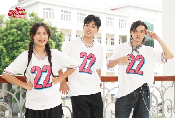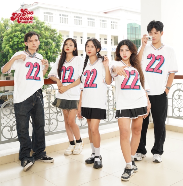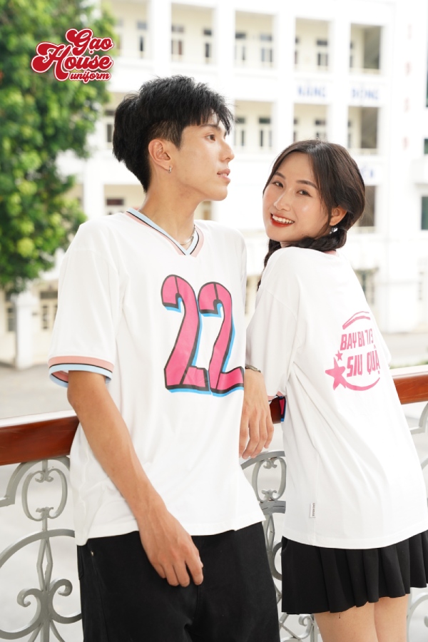 Kiểu dáng áo lớp phối cổ V không chỉ mang tới vẻ đẹp trẻ trung mà còn là biểu tượng “cá nhân hóa”, giúp cả lớp thêm phần cuốn hút, ấn tượng hơn. Màu sắc chính của đồng phục lớp được kết hợp giữa sắc trắng trung tính, điểm nhấn thêm hình in màu hồng giữa ngực và phần line cổ. Sự pha trộn hài hòa này mang đến vẻ đẹp riêng, trở thành điểm cộng giúp cả lớp xuất hiện với một giao diện hoàn toàn mới. Ngoài ra, chất liệu của áo cũng được chọn từ loại vải cao cấp, co giãn 4 chiều mang lại sự thoải mái và linh hoạt cho người mặc.