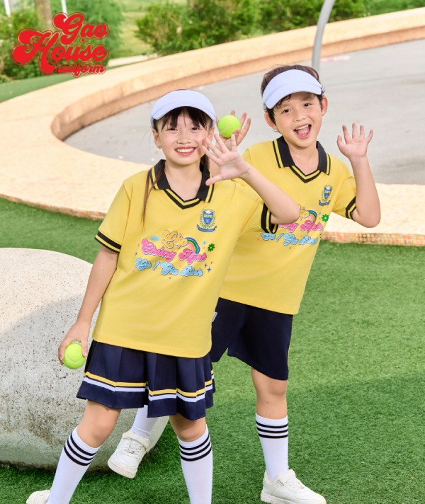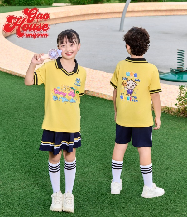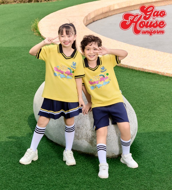 Mẫu đồng phục mầm non đẹp, thiết kế cổ tim trẻ trung, năng động đang là item “bán chạy” nhất tại Gạo House. Item sở hữu tone màu vàng bắt mắt, điểm nhấn phần cổ và tay áo line đen hài hòa tạo nên một cảm giác vui tươi, tràn đầy năng lượng. Bên cạnh đó, áo có form rộng rãi, thoải mái giúp bé dễ dàng vận động và tham gia vào hoạt động học tập. Đặc biệt, chất liệu may áo mầm non còn được Gạo House tuyển chọn từ loại vải thun Cotton 100% cao cấp, thấm hút mồ hôi tốt nhằm đảm bảo sự thoải mái và an toàn lành tính cho bé trong suốt cả ngày dài học tập.
