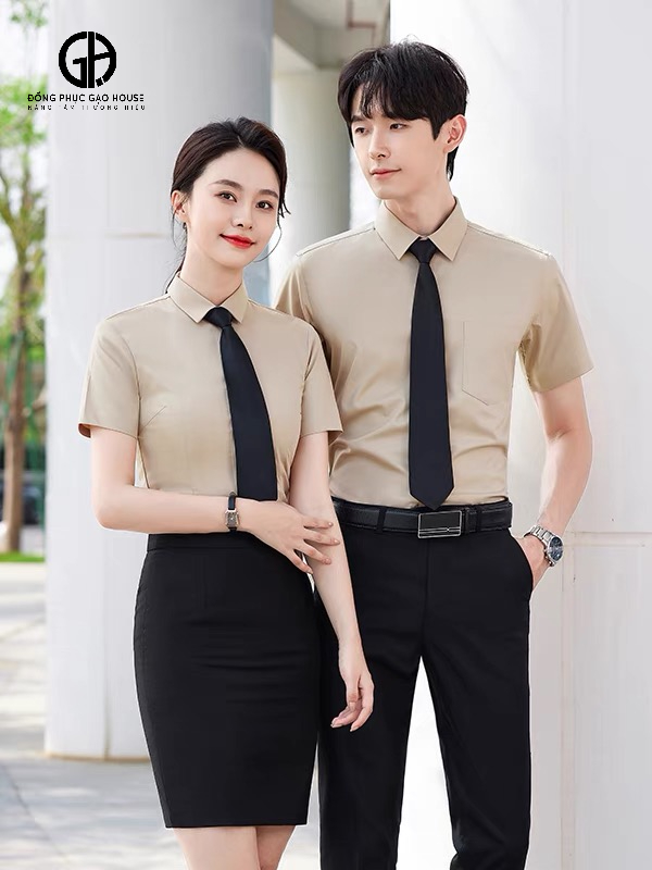 Đồng phục sơ mi tay ngắn màu be nhạt ưu nhã, thanh lịch