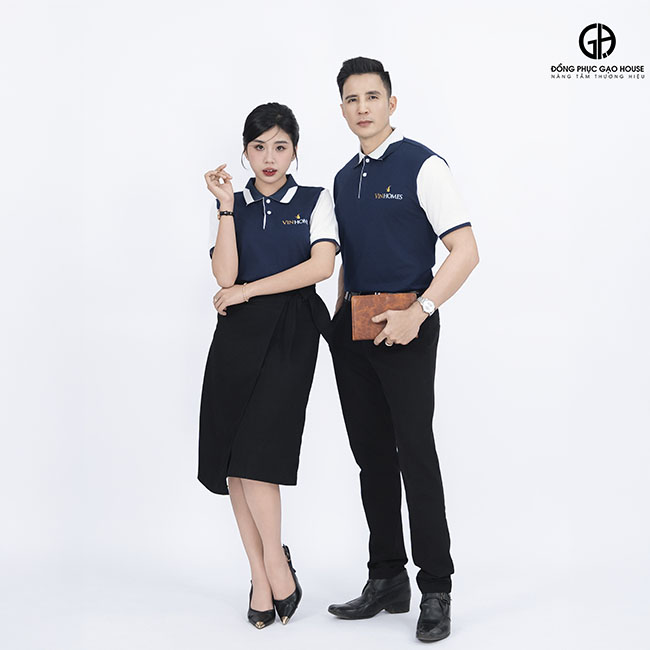 1. Đôi nét về thiết kế áo đồng phục công ty Vinhome màu xanh đen phối tay trắng