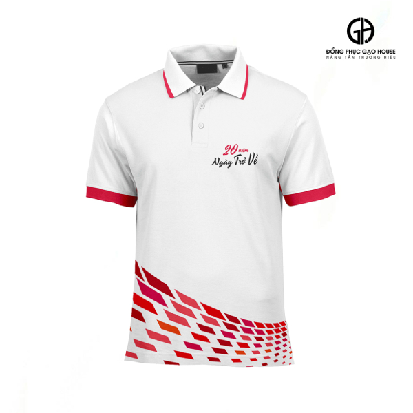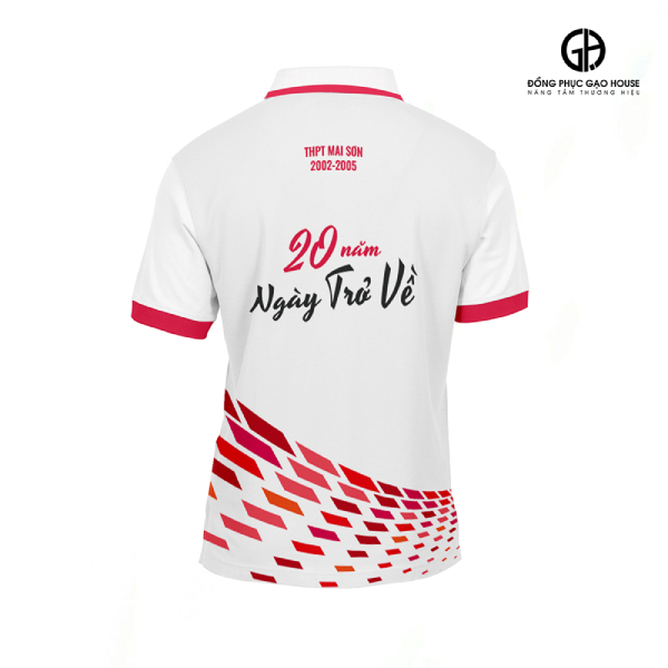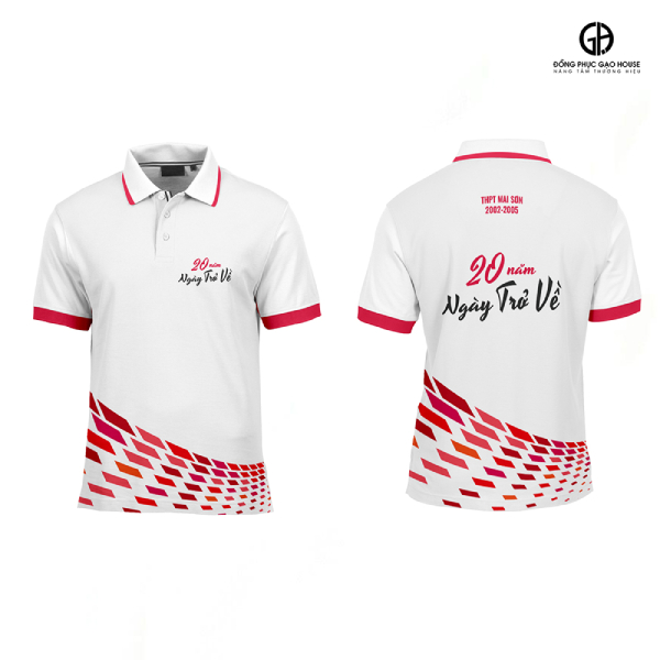 Mẫu áo đồng phục họp lớp màu trắng phối đỏ