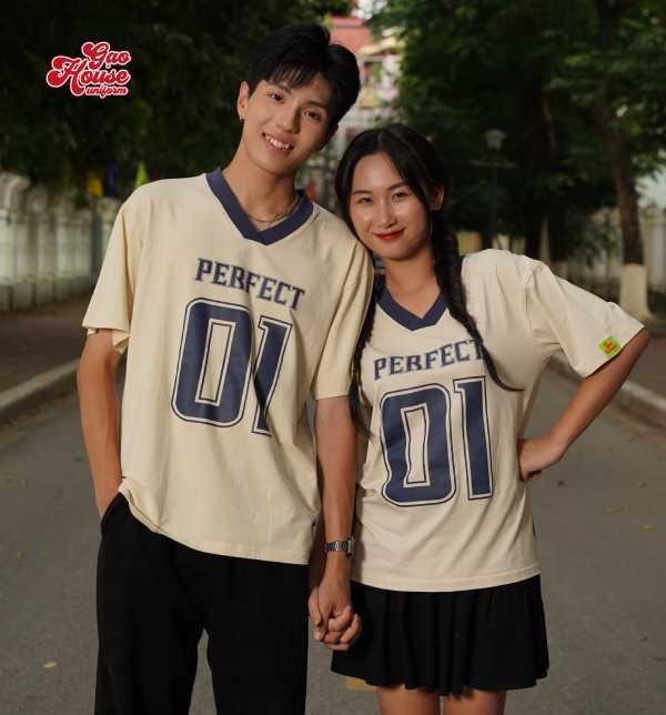 Mẫu áo đồng phục lớp màu be cổ V đang dành vị trí Top 1 trong BST áo lớp được các bạn học sinh yêu thích nhất. Item sở hữu tone màu be trung tính, điểm nhấn phần cổ V phối màu tím than độc đáo. Sự pha trộn giữa hai gam màu này không chỉ mang đến “chất riêng” mà còn giúp cả lớp có thể dễ dàng phối kết với nhiều trang phục khác nhau, tạo nên vẻ đẹp tự tin để tham gia mọi hoạt động. Đặc biệt hơn, mẫu áo lớp này sở hữu form dáng rộng rãi, không kén người mặc, dễ dàng kết hợp mặc đi chơi, đi học.