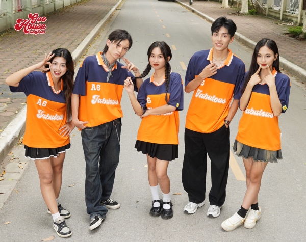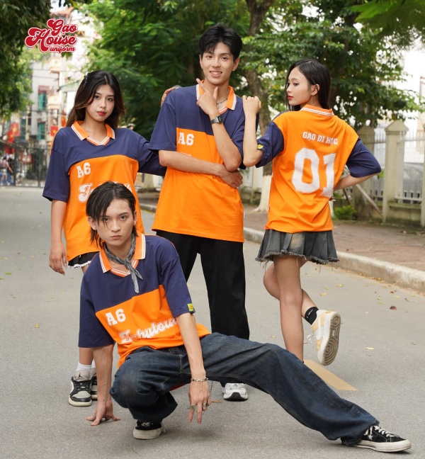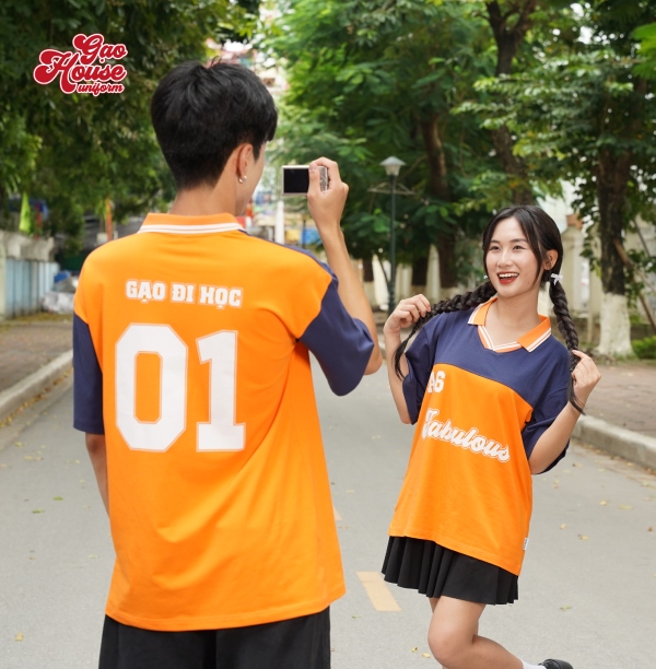 Mẫu áo lớp Oversize màu cam phối cầu vai được đánh giá là thiết kế nổi bật, truyền cảm hứng đến các bạn học sinh. Item sở hữu tone màu cam nổi bật, tô điểm phần cầu vai màu tím than độc đáo. Dáng áo đồng phục lớp polo Oversize của áo còn giúp các bạn học sinh che khuyết điểm hiệu quả, đồng thời tôn lên vẻ đẹp năng động, trẻ trung. Ngoài ra, Đồng phục Gạo House sử dụng chất liệu vải Cotton cao cấp để may áo, co giãn 4 chiều, thấm hút tốt mang đến sự thoải mái, dễ chịu cho người mặc.