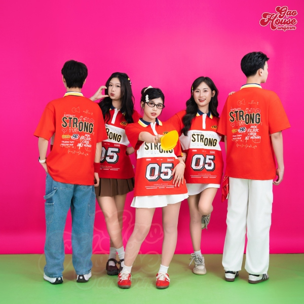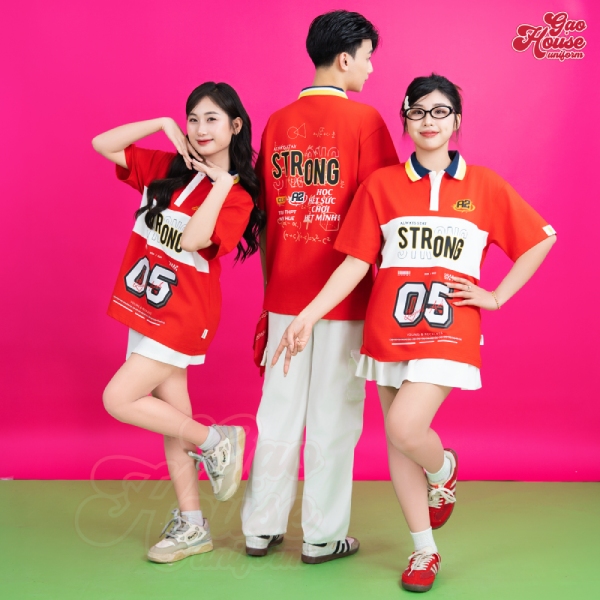 Chiếc áo lớp “Strong” thể thao màu đỏ chính là ngọn lửa nhiệt huyết, thổi bùng tinh thần đoàn kết, sức mạnh tập thể và khát khao chiến thắng. Không chỉ là một chiếc áo, item còn là biểu tượng của sự tự tin, bản lĩnh và tinh thần “chiến binh” không bao giờ lùi bước. Sắc đỏ rực lửa, thiết kế cổ polo thể thao năng động, tạo nên một “tuyệt tác” thời trang độc đáo, giúp cả lớp bạn tỏa sáng và nổi bật giữa đám đông.