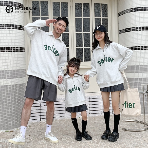 Mẫu áo polo đồng phục gia đình mùa đông “Better” màu trắng mang đến vẻ ngoài thanh lịch, tinh tế và dễ dàng kết hợp với nhiều trang phục khác. Màu trắng tinh khôi tượng trưng cho sự thuần khiết, giản dị nhưng không kém phần sang trọng. Kiểu dáng polo với cổ bẻ lịch sự, tay dài, phù hợp với nhiều hoàn cảnh, từ dạo phố, đi chơi đến những dịp trang trọng hơn. Điểm nhấn của mẫu áo nằm ở dòng chữ “Better” (Tốt hơn) được in ở ngực áo, mang ý nghĩa tích cực, khuyến khích sự cố gắng, vươn lên và hoàn thiện bản thân. Mẫu áo không chỉ là một món đồ thời trang mà còn là biểu tượng của sự gắn kết gia đình, cùng nhau hướng đến những điều tốt đẹp hơn trong tương lai.