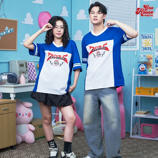 Mẫu áo thun lớp cổ V màu trắng phối xanh mang vibe thể thao cực “cháy”, khiến bất kỳ tập thể nào diện lên cũng trông năng động và cuốn hút hơn hẳn. Sự kết hợp giữa nền trắng sạch sẽ cùng các mảng xanh nổi bật tạo nên một diện mạo phóng khoáng, khỏe khoắn và rất hợp gu Gen Z. Thiết kế cổ V quen thuộc được làm mới theo phong cách sporty, giúp mẫu áo lớp đẹp vừa thoải mái khi vận động vừa tạo hiệu ứng “tôn dáng” khi chụp ảnh. Không chỉ là đồng phục lớp, đây còn là item giúp team bạn thể hiện tinh thần mạnh mẽ, nhiệt huyết và cá tính riêng trong mọi hoạt động học đường.