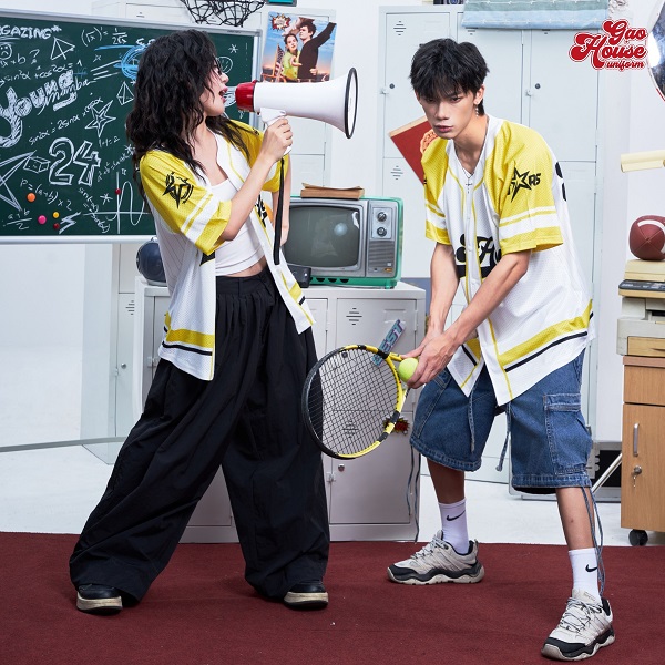 - Kiểu dáng: Thiết kế áo lớp theo form baseball dáng rộng, tay phồng nhẹ, tạo cảm giác khỏe khoắn và phóng khoáng. Phần cúc trước đặc trưng của áo bóng chày giúp tổng thể trông đậm chất “team sports”, đồng thời dễ dàng thay đổi cách mặc, khoác ngoài hoặc cài kín đều đẹp.