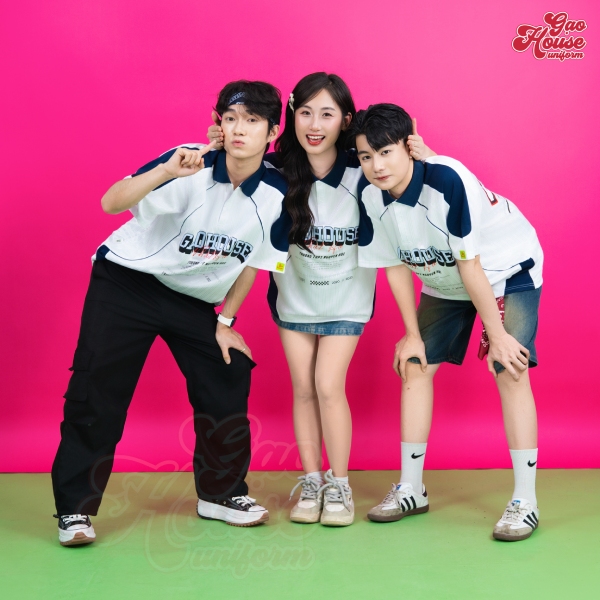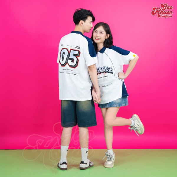 Mẫu áo đồng phục lớp oversize G-Bling polo màu trắng phối xanh luôn là bộ đôi màu hợp gu của GenZ. Tone trắng chủ đạo vừa tinh khôi vừa hiện đại, giúp tổng thể outfit thêm phần sáng bừng, nổi bật giữa đám đông. Điểm nhấn phối xanh đen ở vai và cổ tạo hiệu ứng thị giác mạnh mẽ, đồng thời giúp tăng thêm độ cool ngầu, sang – xịn – mịn. Sự kết hợp giữa hai gam màu basic nhưng không hề nhàm chán chính là “vũ khí bí mật” giúp lớp bạn trông fashionista hơn.