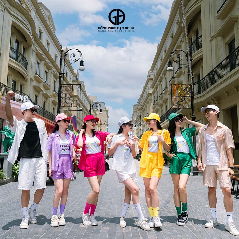 Tạm biệt những outfit đơn điệu, nhàm chán! Mẫu áo đồng phục sắc màu mang đến một bảng màu siêu đa dạng với các sắc thái nổi bật như vàng chanh, cam cháy, tím pastel, hồng ngọt ngào và đỏ năng lượng,…. Mỗi gam màu đồng phục thể hiện cá tính riêng của thành viên nhóm, đồng thời giúp cả tập thể tỏa sáng, nổi bật giữa đám đông.