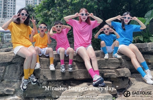 “Mỗi màu áo là một nụ cười – cả nhà cùng diện áo lên là hạnh phúc ngập tràn vô bờ bến”. Set áo gia đình nhóm 7 màu chính là lựa chọn lý tưởng cho những buổi dã ngoại, chuyến du lịch hay ngày hội của bé tại trường. Thiết kế đơn giản, form áo rộng rãi dễ mặc, kết hợp cùng bảng màu tươi sáng như hồng, xanh, vàng, cam… giúp cả nhà tỏa sáng theo cách riêng mà vẫn gắn kết đầy yêu thương. Đặc biệt, khi đặt may áo nhóm gia đình tại Gạo House, cả nhà sẽ nhận được chiết khấu cao và quyền lợi cực hấp dẫn.